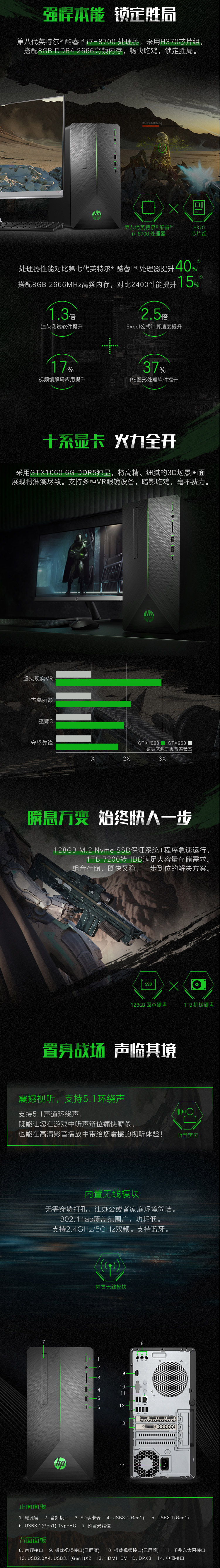 - 商品名稱:惠普 暗影精靈3代 游戲臺(tái)式電腦主機(jī) i7-8700 8G高頻 1T+128GSSD GTX1060 6G獨(dú)顯 顯示器23寸